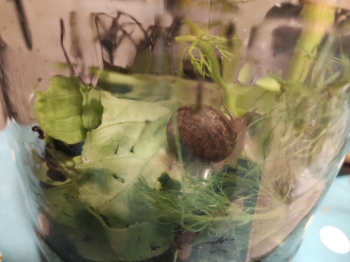 vor ein paar Wochen kam uns im Kühlschrank eine Minischnecke entgegen, die wir wohl aus dem Bioladen in einem Kopfsalat mitgebracht haben. Sie war klein, putzig und seeehr neugierung und vorwitzig. Wir haben sie in ein Glas mit Grünzeug gesetzt und die Schnecke hatte schnell ihren Namen: Speedy con Kacko. Es war uns nicht klar, was aus so einem kleinen Kerlchen rauskommt.