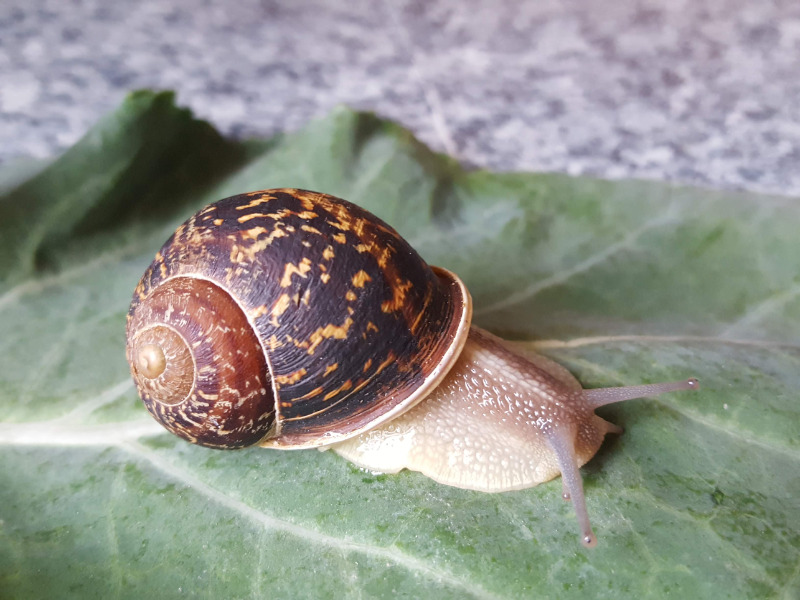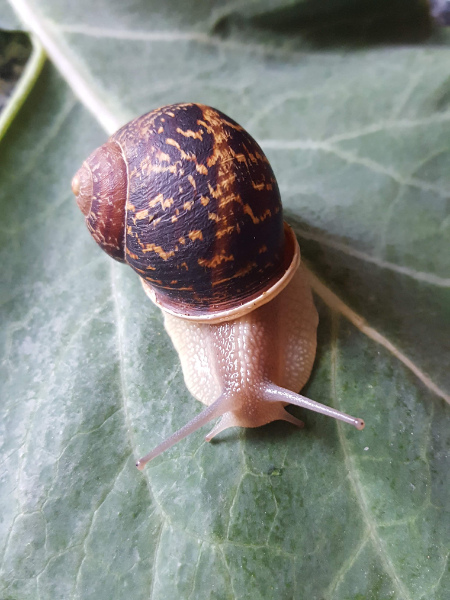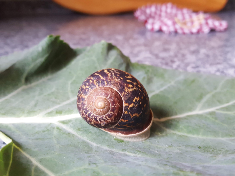 im Januar kam "Schnecki" mittels Biokiste zu uns. Sie saß im Grünkohl, war winzig - nicht größer als ein Cent-Stück - und ihr Häuschen war sehr hell und gelblich-grün.