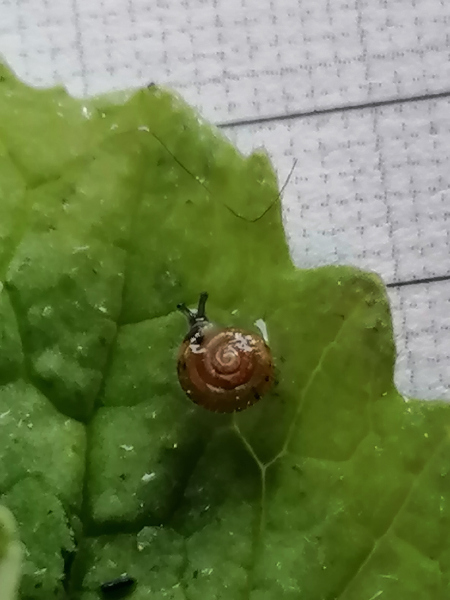 gestern hab ich für meine "Meute" Radischenblätter gewaschen, in Zewa eingewickelt und in den Kühlschrank gelegt...und vorhin als ich sie rausnahmen zum füttern sass winkend eine Babyschnecke auf einem Blatt :shock: :shock: sie hat all meine Waschvorgänge überlebt :eek: sie ist nur Millimeter groß, lebt und frisst, ich denke es könnte eine Karthäuser sein?? Sicher bin ich aber nicht... :-? Jedenfalls sitzt sie im Babyterrarium und bleibt erstmal...ich hab sie kurzerhand " Radischen" getauft :mrgreen: