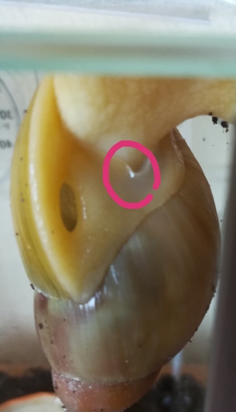 Hab eben diesen Riss bemerkt, ist das eine Verletzung? Hab den Schnecken Eierschalen gegenen, kann es sein, dass sie sich daran geschnitten hat?