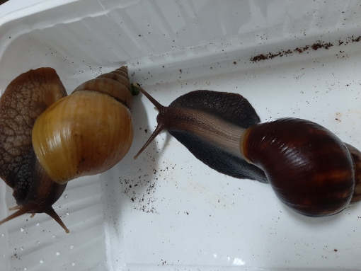 Ich hatte auch die Möglichkeit zwei 300 - 400 g Schnecken zu erwerben aber erstens war meine Familie dagegen und zweitens kam mir es im Nachhinein auch wie eine "Abkürzung" zu großen Schnecks vor, da ich ja eigentlich auch den Wachstumsprozess erleben möchte und meine Schnecken durch alle Lebensphasen begleiten will.