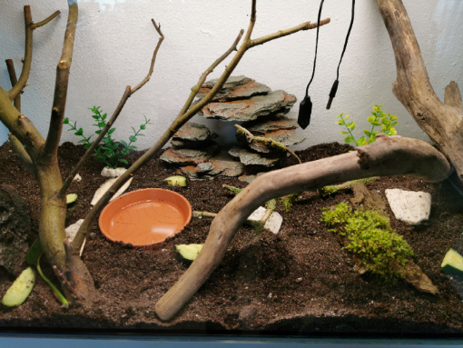 Wie tief ist denn dein Substrat eingestreut? Auf dem Foto sieht es zu niedrig aus, das kann aber auch täuschen. Damit die Schnecken das Substrat nutzen können (zum schlafen und zur Eiablage), muss es mindestens 10cm tief sein.