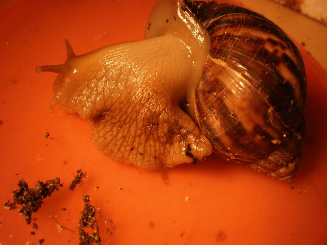 Alle Schnecken bis auf die Kleine sing groß, schwer und fit. Die Kleine ist auch fröhlich, wiegt allerdings nur etwa 35 g. Ist aber fleißig am wachsen. (sie ist genauso alt wie die Anderen)