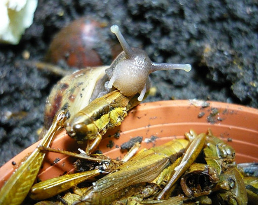 die sehen doch so lieb aus -die kleinen Schnecken. Wer würde denken, daß solche "Monster" drin stecken. (lach) Auf Heuschrecken bin ich noch nicht gekommen. Laub habe ich probiert und prompt waren alle Schnecken an der Decke. Ich habe extra Buchenlaub im Terrarienfachhandel bestellt, weil ich mich nicht getraut habe welches vom Wegesrand einzusammeln. Kam aber nicht gut an. Oder war es das falsche Laub, ich meine aber hier im Forum gelesen zu haben, daß sie Buche mögen.
