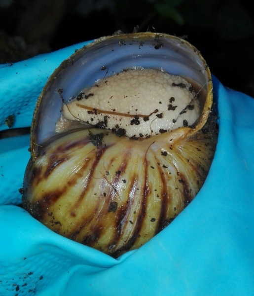 Die dunkle Schnecke benimmt sich normal, frisst gut, ist aktiv sogar sehe aktiv abends, klettert, schleimt rum etc