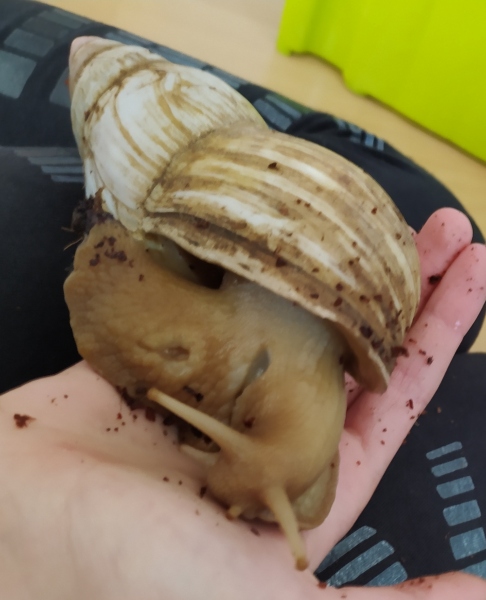 Edit: die oben zu sehenden Tiere sind auch Lissachatina fulica, doch im Farbschlag wildfarben