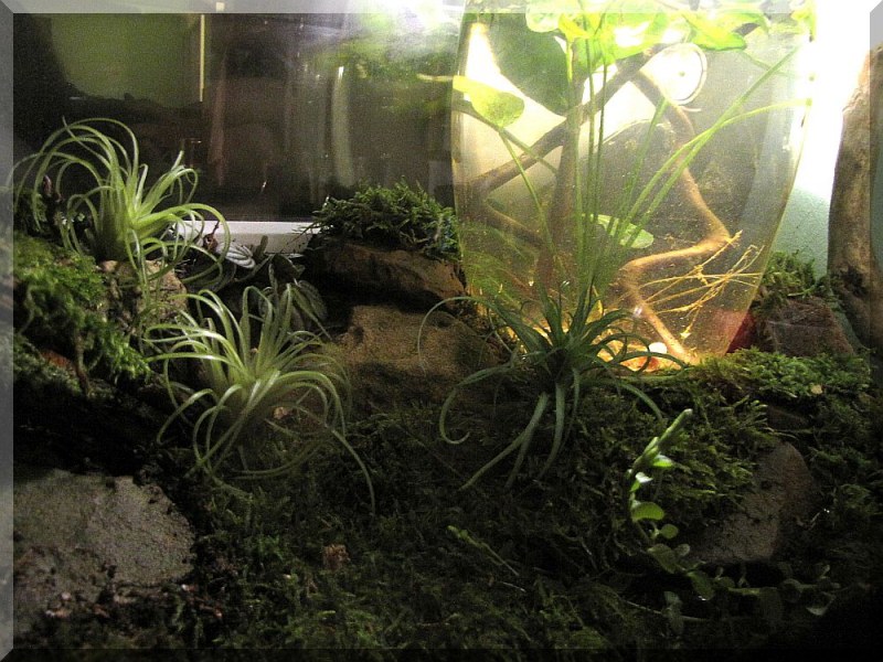 Nun werde ich sehen, was geschieht. Ach ja - damit die Moospolster genug Feuchtigkeit ziehen können, sammelt sich Wasser am Boden bis zu einer Höhe von ca. 1 cm.