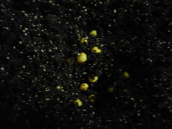 die Eier sind so 3-4 mm groß und bei Fulis gelb (also eher gut sichtbar). Feste Legeplätze konnte ich noch nicht beobachten (bei 2 Gelegen auch eher schwer