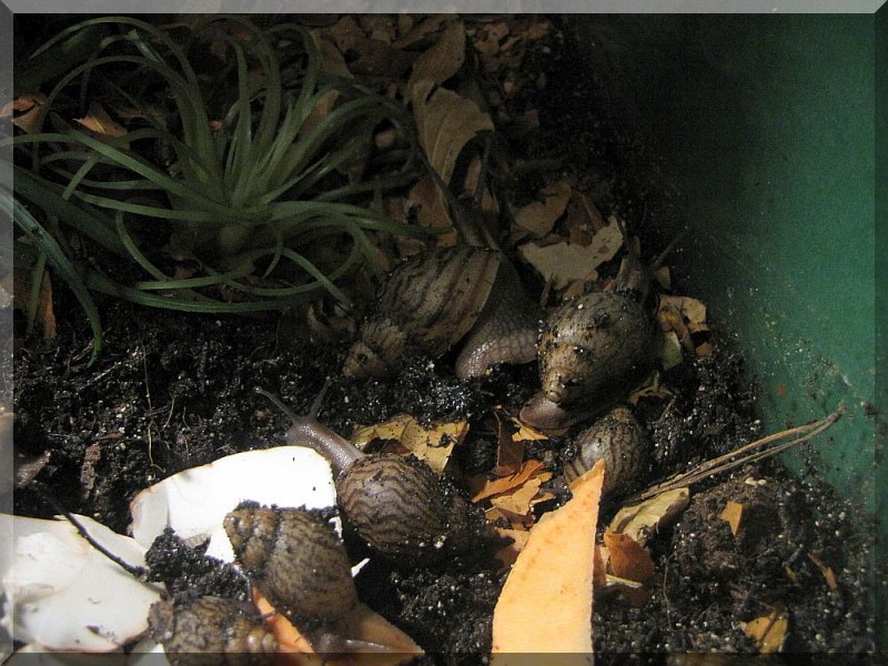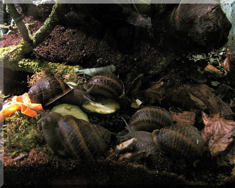 Zur Gelegesuche möchte ich noch erwähnen, dass ich diese nicht vornehme. Wenn kleine Schnecken schlüpfen, sammele ich sie ab und froste sie oder geben sie als Futtertiere weiter (meine Schwester hat Laufis). Ein paar dürfen aber auch groß werden.