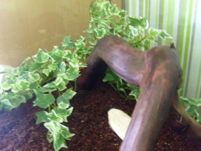 Kunstpflanzen sind für sie zwar was Neues, aber sie werden sich hoffentlich schnell daran gewöhnen. Vielleicht könntest Du noch etwas Moos hinzufügen?