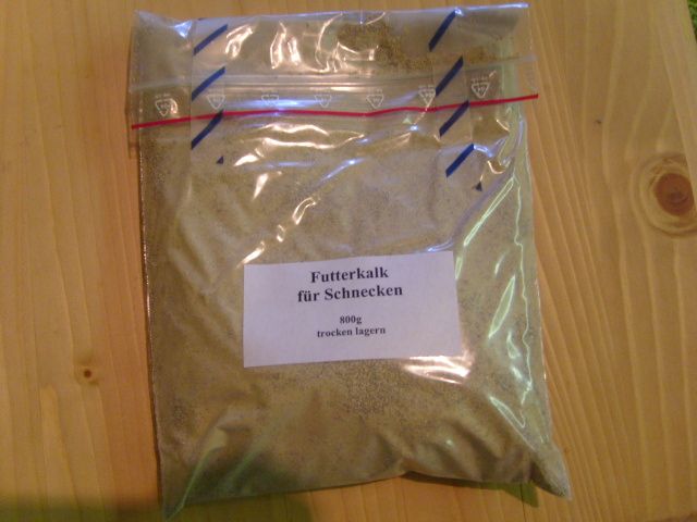 Mische am besten mal Deinen Kalk eins zu eins mit Mehl, dann bekommst Du auch einen leckeren Brei. Ich verwende nur Calziumcarbonat (CaCO3) in meinem Futterkalk (den ich hin und wieder beim großen Auktionsaus anbiete) und das wird regelmäßig und gern von meinen Weinbergschnecken angenommen.