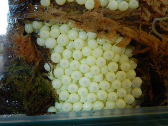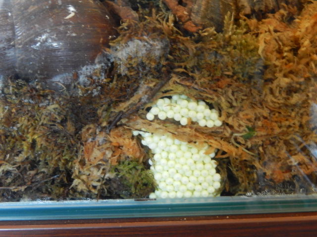 Meine ach so süße Naomi hat heute tagsüber wieder ein paar Eierchen abgelegt, direkt hinter der Scheibe, so dass ich sie fotografieren und genau betrachten konnte und da kamen mir einige Fragen. Zuerst die Fotos: