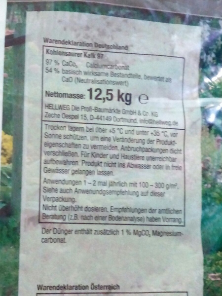 Ich würd mal davon absehen, diesen Kalk zu kaufen, da Brandkalk (CaO) drin ist, der doch recht heftig mit Wasser zu Löschkalk reagiert.