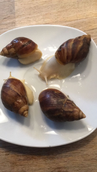 Hm ich bin mir ziemlich sicher, dass deine Schnecken Achatina fulicas "White Jade" sind.
