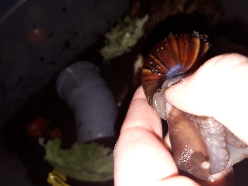 Ich hatte schon von den Bildern ganz oben die Vermutung, dass es sich um Achatina fulica in wildfarben handeln müsste. Die weißliche Columella bestätigt das :)