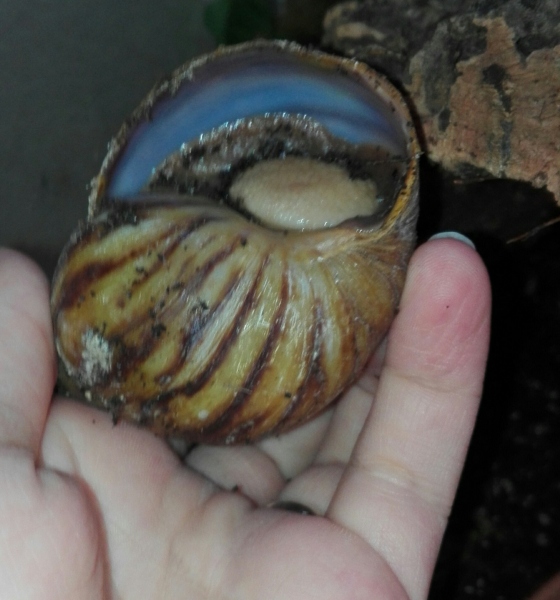 Die dunkle Schnecke benimmt sich normal, frisst gut, ist aktiv sogar sehe aktiv abends, klettert, schleimt rum etc