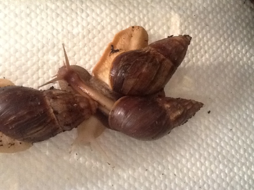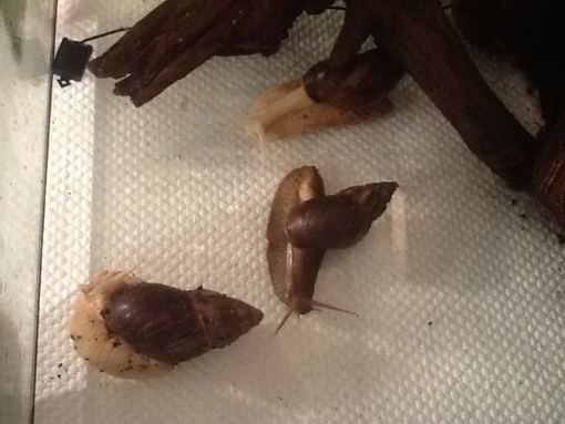 wie Nell schon geschrieben hat, sind es Achatina fulica. Diese brauchen tagsüber 24-26 Grad, nachts etwas kühler.