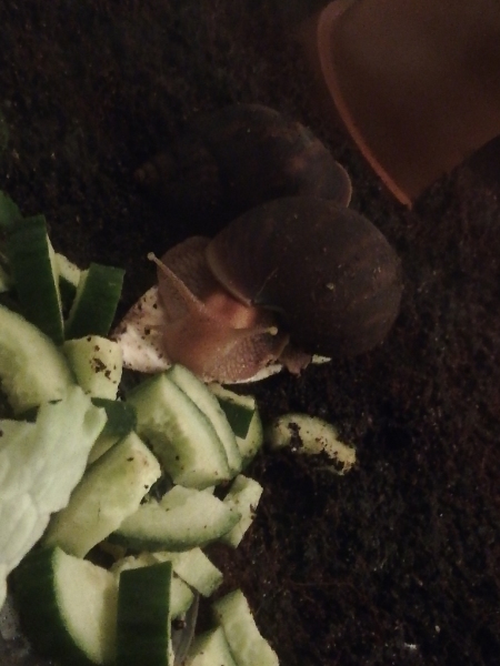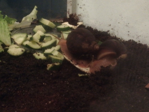 Ich füttere sie mit Gurken und Salat (was andres mögen sie nicht) und wechsle das Futter alle 2 Tage.