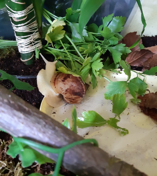 Ich habe drei Achatina Reticulatas. Zeus, Odin und Hera. Ich habe sie vor ca. 10 Wochen bekommen. Seit dem sind sie gut und schnell gewachsen. Mein Sorgenkind ist Zeus. Er knabbert ständig an seinem Häuschen. Beim letzten wiegen, wog er 31g. Hat folglich in einer Woche ziemlich genau 1g zugelegt. Er hat auch keinen Wachstumsrand mehr.