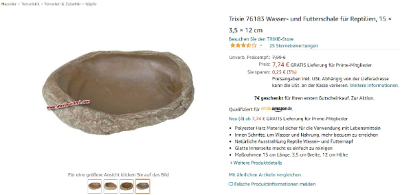 Ich richte gerade mein erstes Terrarium ein und habe von TRIXIE eine Wasser- und Futterschale bestellt.