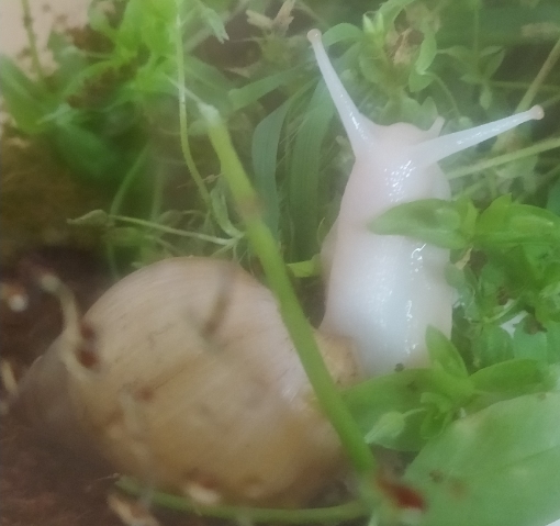 Das sieht auch wie eine Lissachatina fulica Vollalbino aus, aber sie sieht sehr krank und ungesund aus...