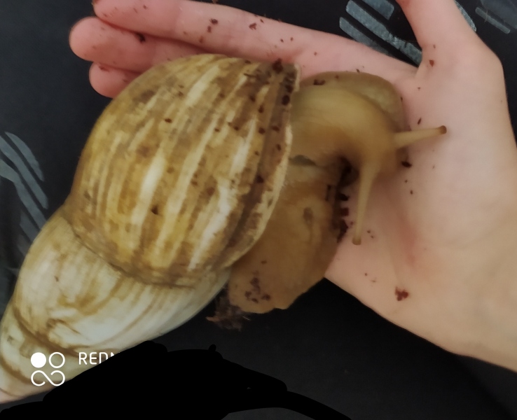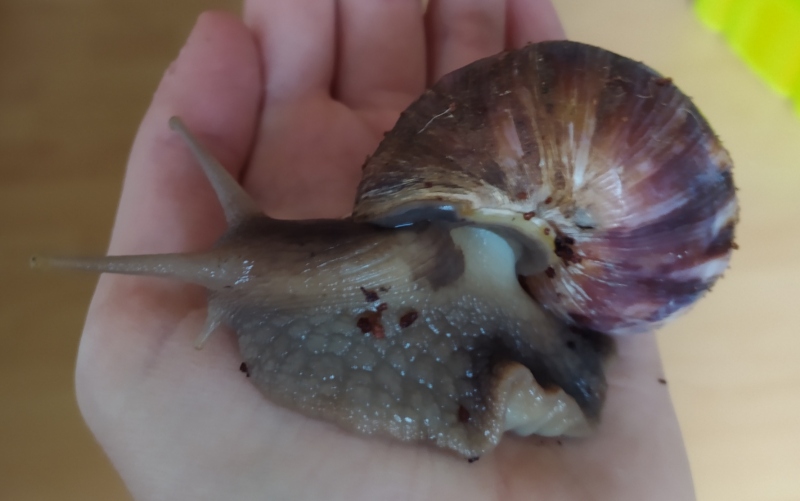 Edit: die oben zu sehenden Tiere sind auch Lissachatina fulica, doch im Farbschlag wildfarben