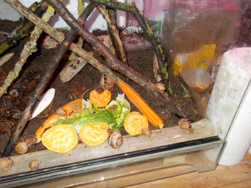, wir fangen erst mal mit gestreiften Weinbergschnecken an und Schnecken uns langsam vor Zurück zu Anfängerecke (Achatschnecken)