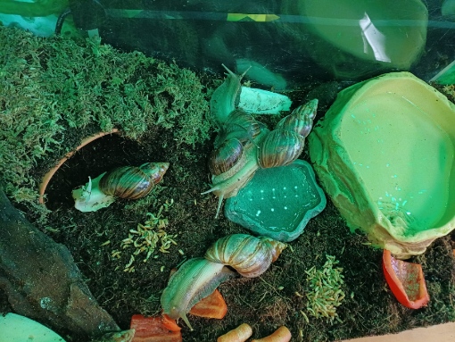 Lissachatina fulica mag es so um die +/-25 °C warm. Kommt immer ein bisschen drauf an, was sie gewohnt sind. Nachts auf 23°C abkühlen lassen. Da reicht es oft schon, wenn das Licht aus ist (falls ihr euer Terrarium beleuchtet)
