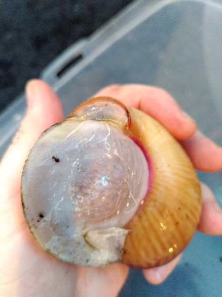 Ich hatte dann versucht ganz sanft den kleinen Teil doch noch abzulösen, habe es aber auch nicht geschafft. Vor etwa einem Monat sind sie dann nochmal in Trockenruhe gegangen, aber leider löste auch das den kleinen Kalkdeckel Teil nicht ab. Dadurch wächst das Häuschen nun an dem Teil nicht. Es geht um den kleinen Bogen, wo der Kopf ist. Man sieht an der Stelle das ihr Häuschen nicht rundum wächst, sonder dieser Teil wo das Kalkdeckelstück noch sitzt nicht mitwächst.