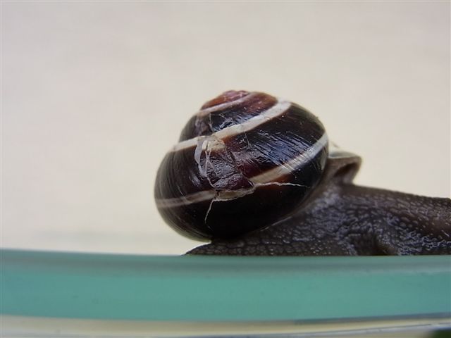 Als wir unser Terrarium eingerichtet haben, hat meine Tochter Antonia eine ganz tolle Schnecke gebracht; sie ist dunkel und richtig frech! Da sie eine Hausverletzung hat, habe ich gleich gesagt, dass wir sie behalten und so bereichert sie unser Terrarium seit zweieinhalb Wochen. Allerdings mache ich mir ein wenig Sorgen, anfangs dachte ich sie leidet unter schlaflosigkeit, da sie viel wandert, wenn die anderen schlafen und habe das belächelt. Jetzt glaube ich aber, dass sie vielleicht Probleme mit ihrem kaputten Haus hat. Gestern habe ich sie dann herausgefordert und ein wenig geärgert (das war schon schlimm für mich, da sie so zutraulich ist...) und sie hat sich auch in ihr Haus zurückgezogen, wenn auch wasserspritzend. Gleich darauf kam sie aber wieder raus und ich habe sie wieder rastlos gesehen und heute morgen, wie jeden Morgen hatte sie nur den Kopf ins Haus gezogen aber ihr Hintern war draußen. So jetzt zu meiner Frage: Kann eine Schnecke auch so ein Gehäuseschaden wie auf den Fotos zu sehen, selbst beheben? Ich sehe keine spitzen Teile ins Gehäuse ragen und ich habe nicht den Eindruck, dass es offen ist.