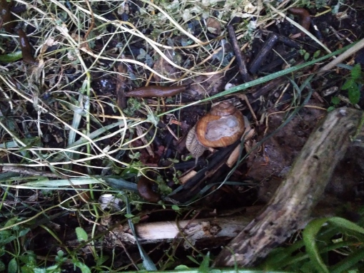 Gestern Abend fand ich auf der Straße zwei Weinbergschnecken, vermutlich von einem Anhänger gefallen. Eine war unverletzt und munter und wurde gleich in den Garten gesetzt. Die andere hat's übel erwischt:
