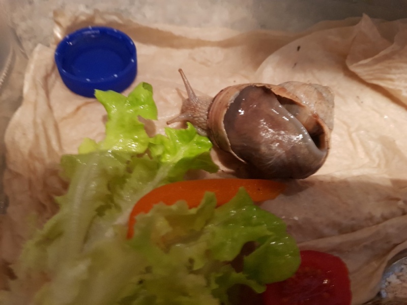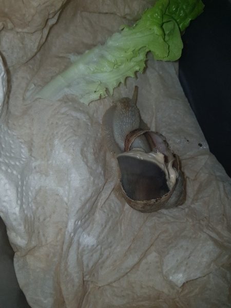 Sie sitzt jetzt in einer tupperdose, habe etwas feuchtes Küchenpapier unter sie gelegt und ein salatblatt gegeben. Sie macht das, was ich auch von gesunden Schnecken kenne, sie kriecht rum und tastet mit ihren Fühlern die Umgebung ab. Aber ich weiß auch nicht, ob und wie Schnecken Schmerzen zeigen etc...