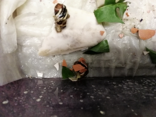 Dass du versucht hast den kleinen noch zu helfen war sicher nicht der Grund für ihren Tod. Das war so ziemlich mein erster Gedanke als ich das Bild sah, daß die das nicht schaffen. Schon eine Loch im Gehäuse, wenn Schnecken auf irgendwas draufgefallen sind, ist ein Risiko und geht nur gut, wenn der Eingeweidesack darunter nicht eingerissen ist und die Organe nicht gequetscht sind. Setzt auch voraus, daß sie sich noch bewegen und zumindest Kalk zur Reparatur des Häuschens aufnehmen können.