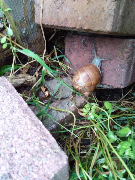 Gestern Abend fand ich auf der Straße zwei Weinbergschnecken, vermutlich von einem Anhänger gefallen. Eine war unverletzt und munter und wurde gleich in den Garten gesetzt. Die andere hat's übel erwischt: