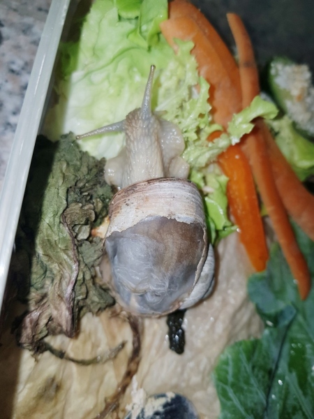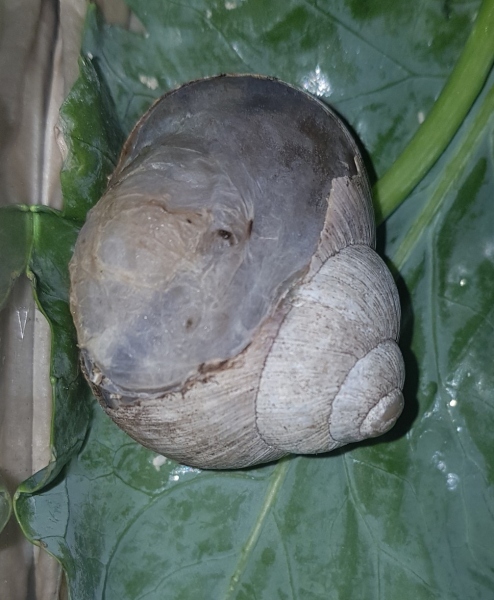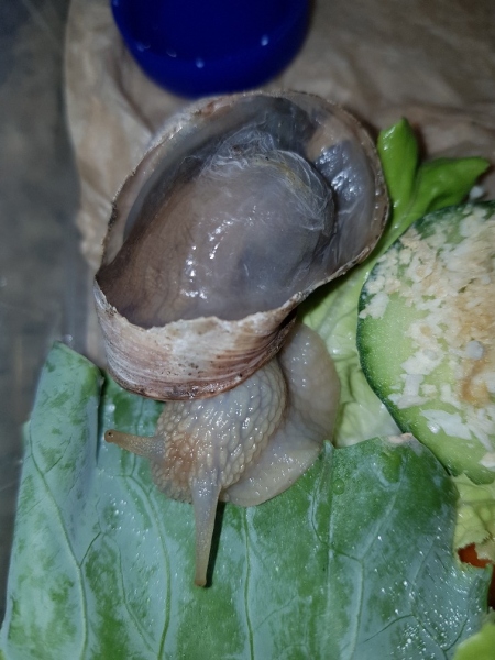 Also ein kurzes Update: Die Schnecke lebt und das Haus sieht auch ziemlich gut aus. Es ist nicht superschön geformt, aber sie passt gut hinein und es hat sich überall eine dünne Kruste gebildet.