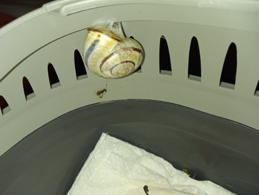 Als ich eben ihre Box sauber machen wollte, bin ich mit der Hand an ihr Haus gekommen und sie ist runter gefallen auf das Zewa in der Box. Ich hab dann gewartet bis sie rauskam und festgestellt das der Mantel wieder da ist wo er sein soll. Ich hab sie daraufhin zurück ins Terra gesetzt. Wo sie erst mal sitzen blieb. Nach ca. 1 Stunde als sie sich mehr bewegte kam wieder ein Stück Mantel raus. Sie sitzt nun im 45er Terra bei den Garten-Bändern wo eine bessere Belüftung herscht.