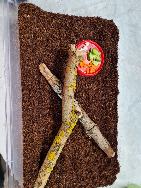 Zur Fütterung: die letzten beiden Tage hat sie nur Gurken und Wassermelone gefressen. Salat, Löwenzahn und Brennnessel rührt sie nicht an.