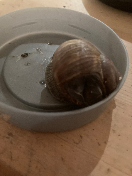 ich glaube ich habe ein kleines Zauberschneckchen 8D Schneck war lange im Haus (komplett!!!), kam jetzt raus wegen Kohlrabiblätter und Süßkartoffen - und heute fällt die Haut nicht wieder ein, juhu!