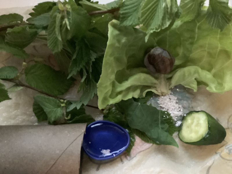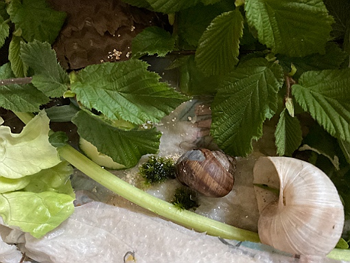 Stelle den Behälter jetzt bei den Temperaturen in den Halbschatten und lüfte natürlich mehrmals täglich. Ein Gitter konnte ich leider nicht anbringen, anstelle des Deckels, zumindest stundenweise dachte ich mir, für den Schneck um mehr an der Natur zu sein. Es versucht sonst ständig rauszukriechen und ein dichteres Gitter habe ich nicht, nur ein Kaninchengitter.