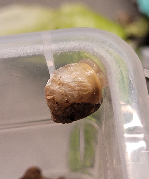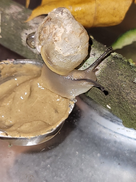 Und dann braucht der Patient eine eigene Box mit feuchtem Zewa, einer Versteckmöglichkeit - am Besten aus Kunststoff, ganz wichtig ganz feiner Kalkbrei und natürlich was essbares.
