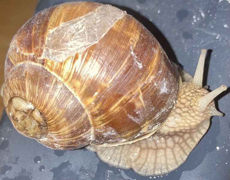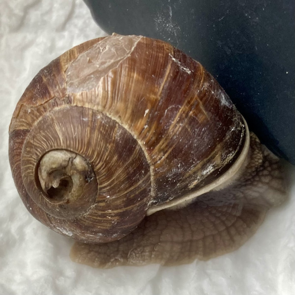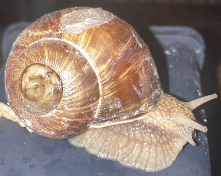 Apex ist trocken, die Verletzung an der unteren Windung wird härter, er frisst Süßkartoffel und Flechten.