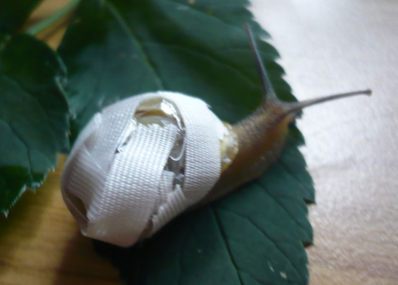 Okay, danke für die Hilfe. Ich kanns ja nochmal ändern, wenn es den Schnecken nicht schadet. Bei Schnecke 2 ist mir beim Kleben aufgefallen, dass das Häuschen instabil wirkt. Beide sind aber irgendwie noch ziemlich fitt. Ich weiß, es fehlt viel, aber vieleicht schaffen sie es ja doch. Also, soll ich den Verband ändern und mit Eierschale machen oder dranlassen?