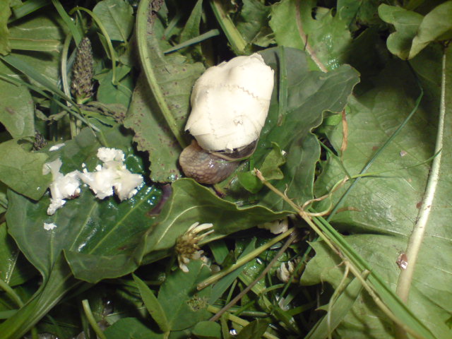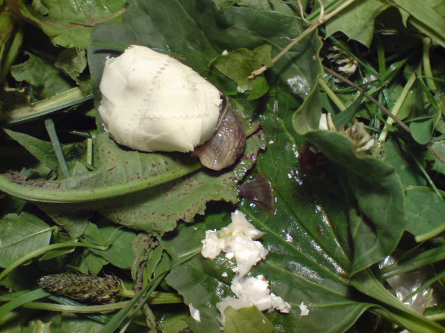 Schnecke von Erde abgewaschen - rein genommen. Den Weichteil, mit Klarsichtfolie umhüllt und mit Tape alles befestigt. Die Schnecke kroch erst noch rum. Ich habe Ihr ein feuchtes Nest gebaut und hastig noch Eierschale zerkleinert und dazugelegt. Leider musste ich heute noch weg und musste sie erst mal allein lassen