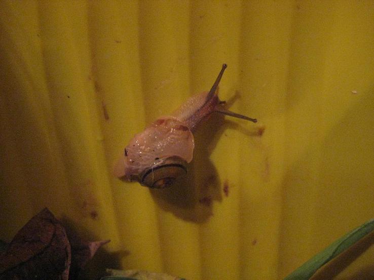 Jetzt ist nur noch der Deckel, die Spitze übrig wie ihr sehen könnt.Schnecken hat keine inneren Verletzten oder äußere Blutungen. Sie ist putzmunter, erforscht ihre Welt und schneckt umher!