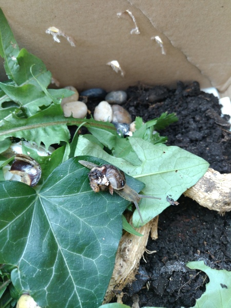 Bei der Gartenarbeit gestern, bin ich Trottel auf eine Schnecke getreten. Das Haus ist nahezu komplett zerstört.(Das Stück, das auf dem Foto zu sehen ist, hat sie mittlerweile abgeworfen oder verloren)