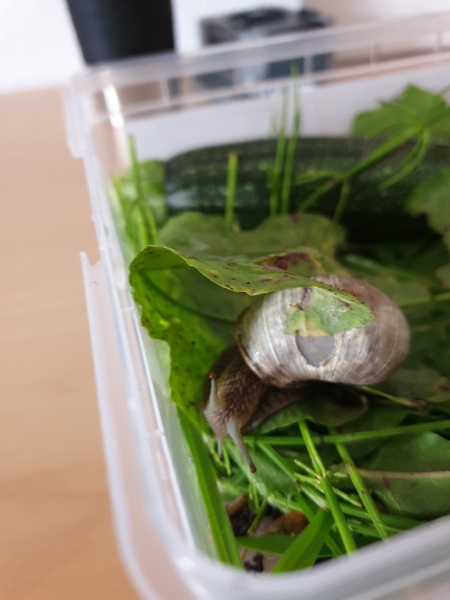 Ich habe eine Verletzte Weinbergschnecke (Lili) gefunden und sie aufgenommen.