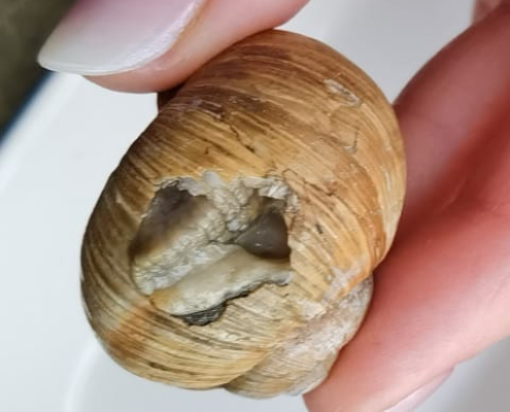 Verletzte Schnecke mit Loch gefunden