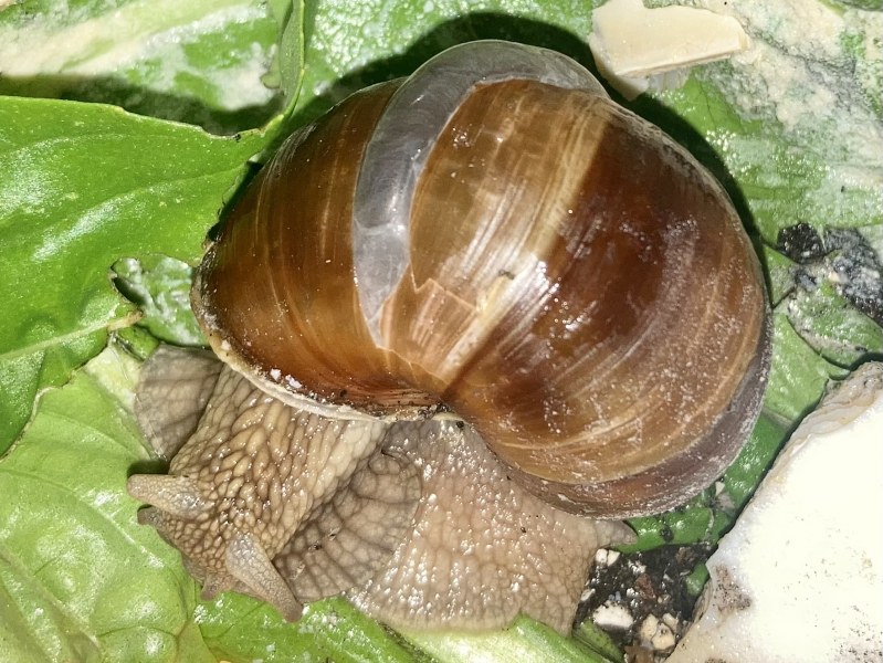 Als Futter könntest du ihr KohlrabiBLÄTTER anbieten, die sind für viele Schnecken unwiderstehlich...