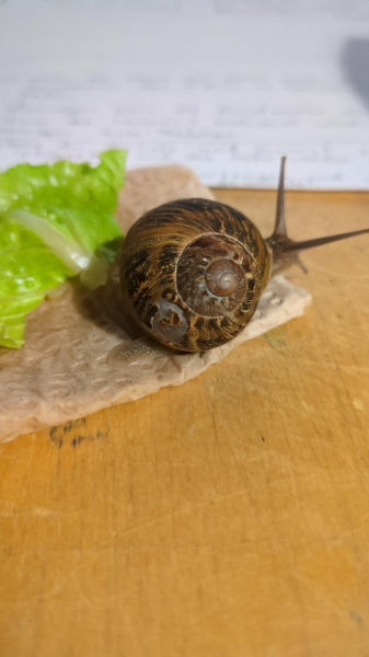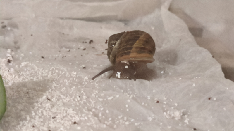 ich habe heute zwei Schnecken mitgenommen, die mir hilfsbedürftig erschienen. Eine, Hubba, hat ein Loch im Gehäuse, aber da es nicht sehr groß ist und sie auch aktiv ist, rechne ich ihr gute Chancen zu. Die andere, Bubba, hatte an der Öffnung ihres Hauses getrockneten Schleim kleben, und wirkte auf mich im Moment so, als hätte sie schon versucht sich Winterfest zu machen, aber wäre aus ihrem Versteck entfernt worden. Also habe ich beide eingepackt und ein altes Aquarium für die beiden hergerichtet.
