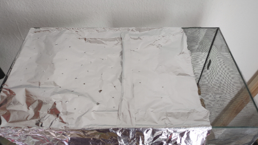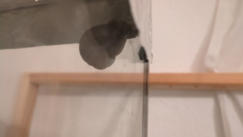 Gerade Hubba hat sich immer wieder In eine der oberen Ecken verkrümelt, da wo die Alufolie, mit der ich das Aquarium abdecke, schön übersteht und ein bisschen Sichtschutz bietet.
